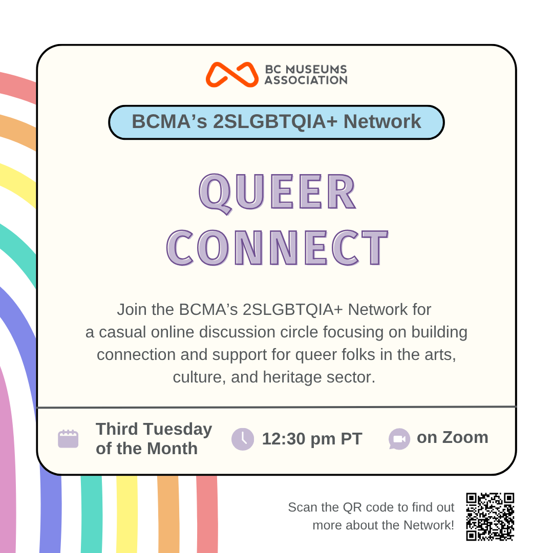 The 2SLGBTQIA+ Network will follow a similar model to the IBPOC Cultural Professionals Network with a BCMA Coordinator and a paid Advisory Group who will shape the goals, vision, and programming of the Network. Expressions of interest are being accepted throughout July 2023!